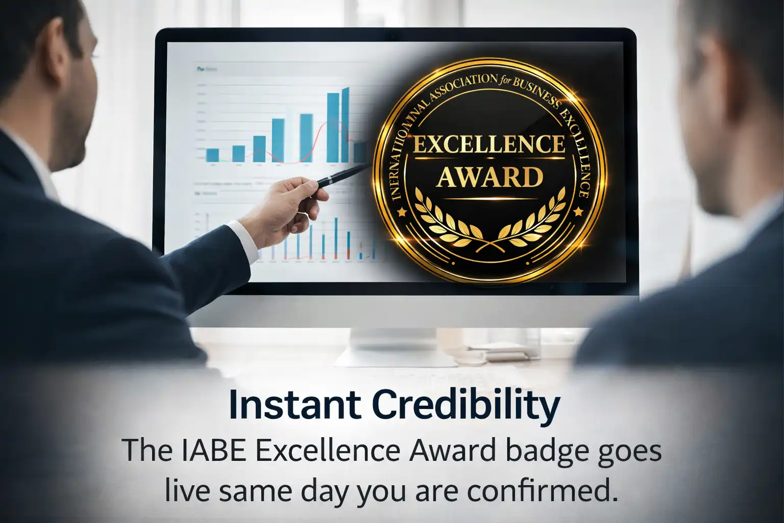 Instant Credibility — The IABE Excellence Award badge goes live on your website, proposals, and marketing materials the same day you are confirmed. Every client and partner who encounters your brand sees verified third party recognition immediately.